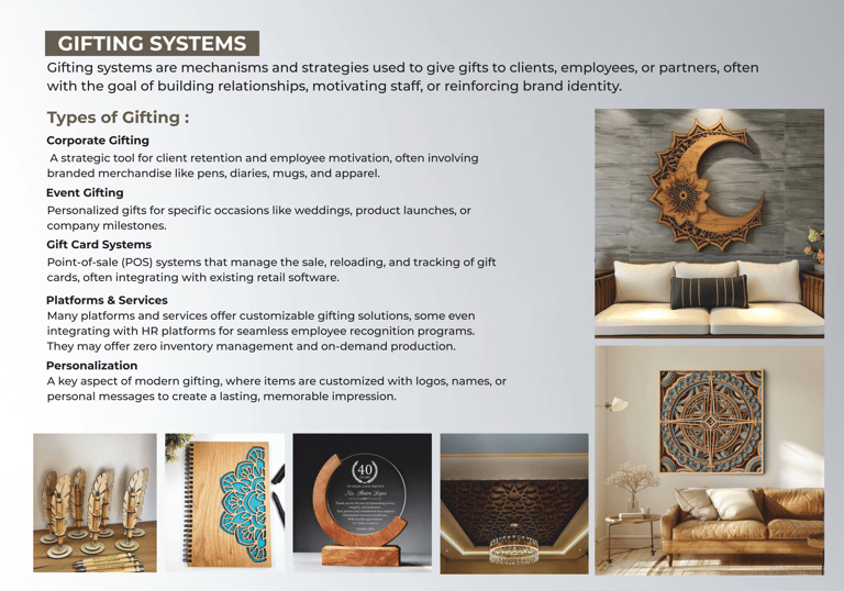 Gifting systems are mechanisms and strategies used to give gifts t o clients, employees, or partners.